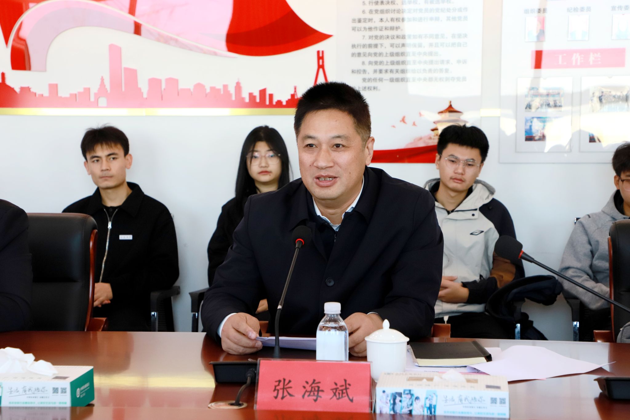 镇江市农业农村局党委委员、副局长张海斌致辞,他提到镇江 “三农” 发展 “很有前途”,具备自然禀赋、领军人物、优质产业等优势,能让大家施展才华、实现价值;镇江 “新农人” 培育 “很有底气”,构建 “选育扶用” 全链条模式,提供政策、培训、实训等多方面支持;政校企合作“很有未来”,双方合作基础深厚,将深化合作培育更多高素质“新农人”,助力农业农村现代化。