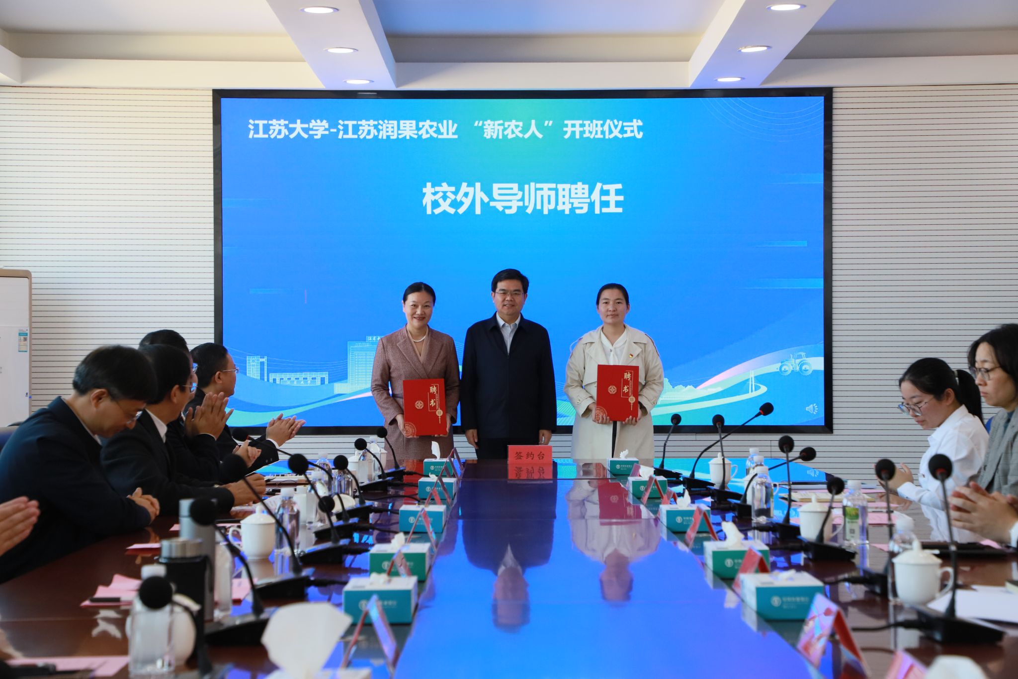 江苏大学党委书记李洪波聘任江苏润果农业发展有限公司董事长魏巧、支部书记戴从娟为“新农人”班级校外导师。